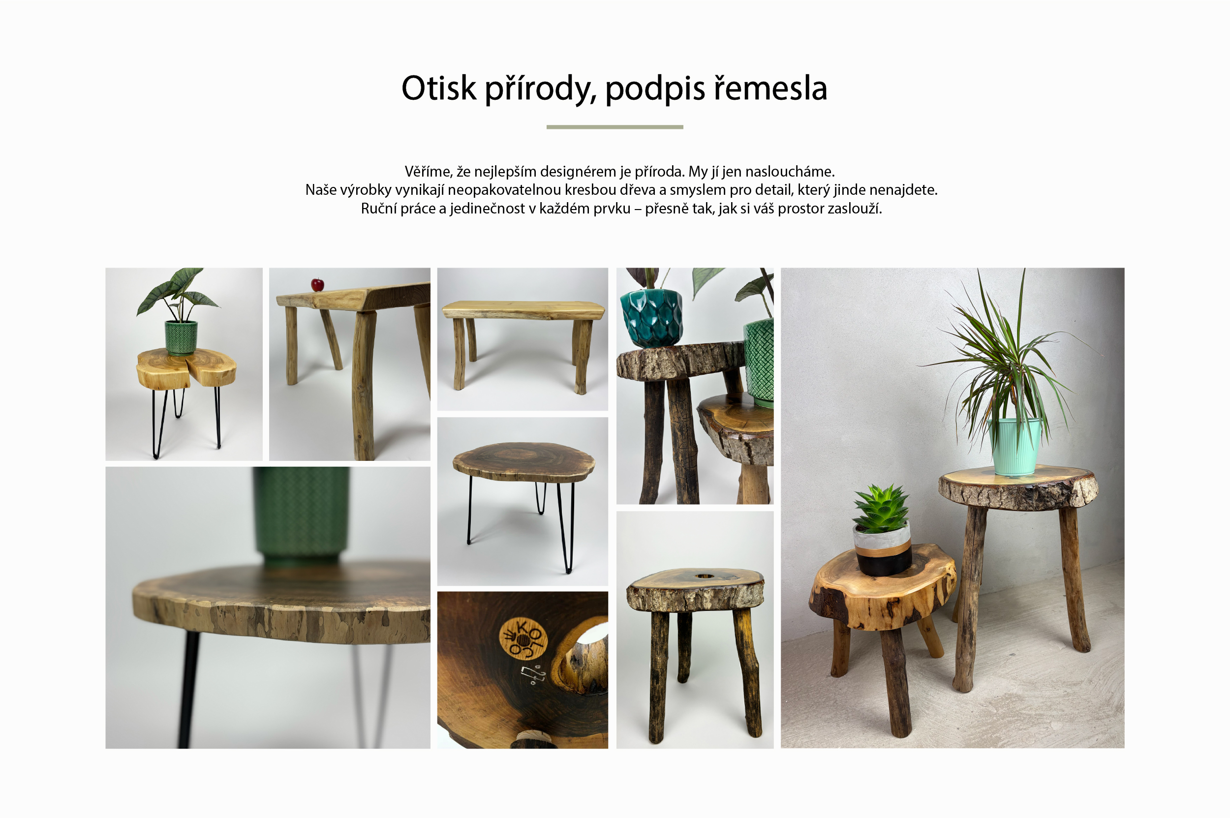 Práce se dřevem nás živí a baví. Vyrábíme spoustu krásných věcí, které dělají našim zákazníkům radost. Ale chyběla nám vizitka. Něco, čím se můžeme pochlubit světu. A proto vznikl internetový obchod KOLCO.cz. Masivní prvky s přírodní hranou jsou totiž kumšt, který jen tak někde neseženete. Tak mrkněte, co je zrovna v nabídce. Protože každý kus je originál.