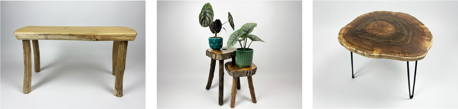 Ručně vyráběné multifunkční stoličky z přírodního dřeva.